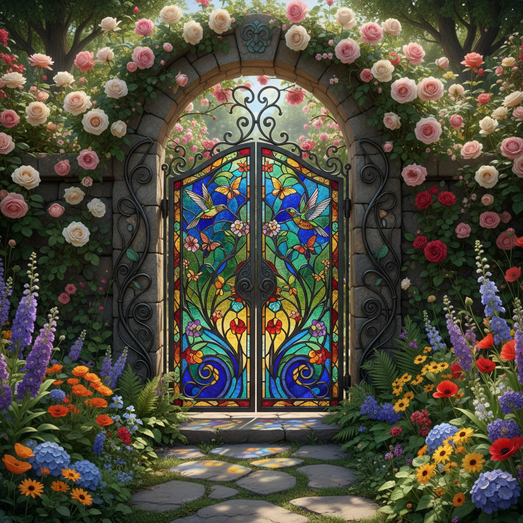 Stained glass garden gates represent a beautiful fusion of art and practical application, bringing a unique aesthetic to outdoor spaces. These gates are increasingly popular among garden enthusiasts who seek to add a personal and visually striking element to their gardens. Beyond their functional purpose of providing access and security, stained glass gates serve as artistic focal points, transforming ordinary entrances into captivating features. The blend of colorful glass and intricate designs offers a visual appeal that enhances the overall ambiance of any garden, making it more inviting and aesthetically pleasing.